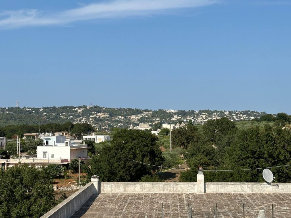 Giungendo al piano primo, l’abitazione presenta rifiniture degli anni 90′ e si sviluppa su una metratura di 75 mq, internamente comprende: ingresso- zona giorno con termocamino; cucinino, tramite cui, passando per una scala interna, si accede al lastrico solare dove troviamo il trullo sovrano ed un locale lavanderia. Ritornando all’interno dell’abitazione troviamo: 2 camere da letto ed un bagno. Completa il primo piano, una confortevole terrazza a livello da cui godere del panorama collinare circostante.